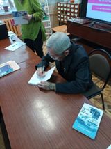 Народный писатель Республики Марий Эл, наш земляк А. А. Богданов привез библиотекарям ЦБС свою новую книгу "Илышын шере ден кочыжо". (Сладости и горечи жизни). В презентационной форме писатель рассказал о создании романа. Затронул некоторые яркие моменты из своей жизни, которые переплетаются с судьбой главных героев произведения. Библиотекари проявили большую заинтересованность к этому произведению. Каждая библиотека района обогатила фонд своей библиотеки новым романом. Аркадий Арсентьевич в каждой книге оставил памятную надпись с автографом.
