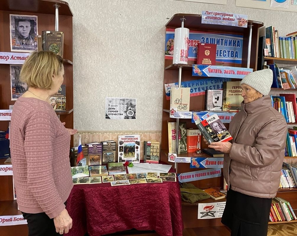 В Обшиярской библиотеке состоялся урок мужества для школьников «Гордимся славою героев». Юные читатели познакомились с историей возникновения памятной даты, узнали имена славных героев-орденоносцев со времен Отечественной войны 1812 года, Первой мировой войны, Великой Отечественной войны. Не забыли и о героях нашего времени – познакомились с именами уже современных героев: чеченской, Афганской войн и воинов-односельчан, которые участвуют в специальной военной операции. Завершилось мероприятие обзором книжной выставки «Герои Отечества».