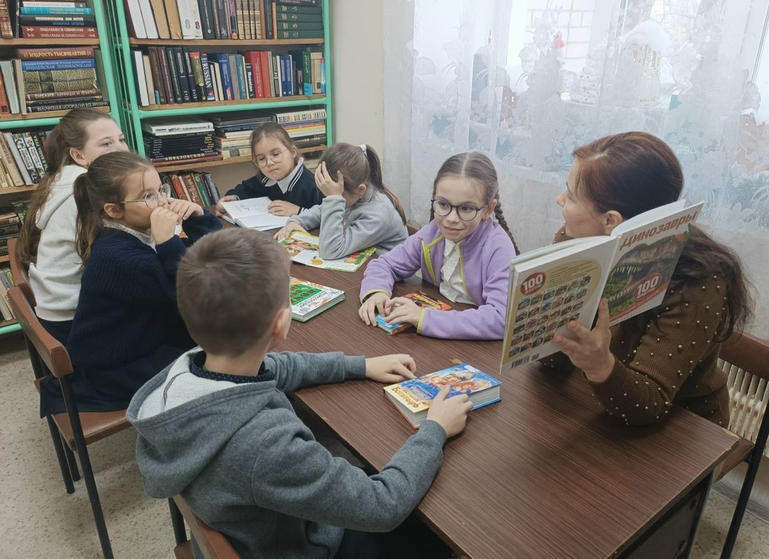 Слово «динозавр», что означает «ужасная рептилия», придумал английский палеонтолог Ричард Оуэн. Динозавры всегда будоражили умы ученых, историков и наше воображение. Поэтому участники клуба с интересом прослушали рассказ о том, как выглядела наша планета тогда, когда на ней не было ничего живого. Они узнали об ученых – палеонтологах, которые по окаменелым останкам животных определяют, как выглядели, как передвигались и чем питались древние животные, жившие когда-то на планете. Им рассказали о способах выживания, охотничьем мастерстве, маскировке, размножении, органах чувств, внешнем виде, образе и повадках. А также познакомились с гипотезами, объясняющими тайну вымирания динозавров.