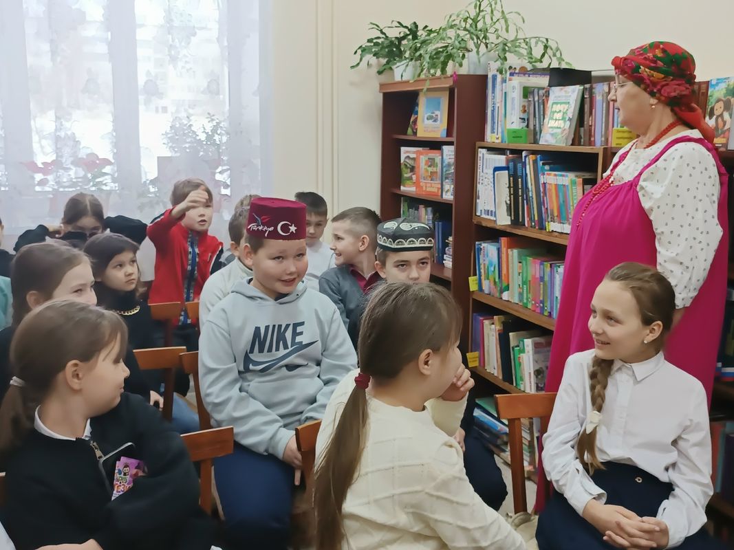 Школьники ознакомились с национальными костюмами, праздниками и фольклором, характерными для разных регионов России. Они прослушали марийскую народную сказку «Ловите» и посмотрели русскую народную сказку «Сестрица Алёнушка и братец Иванушка».