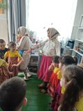 Затем, под задорную марийскую мелодию, началась веселая игра «Передай лапти». Дети водили хоровод, передавая лапти друг другу, а когда музыка останавливалась, тот, кто оставался с лаптями, должен был рассказать что-то интересное.