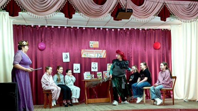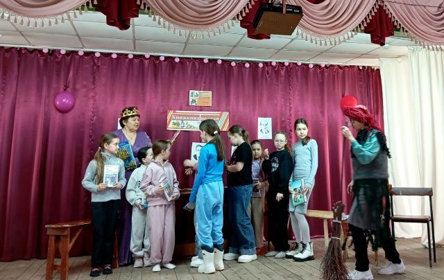 В Бизюргубской библиотеке детей посетила Королева Книги. Она организовала библиофуршет с заданиями: угадывание «Поздравительных телеграмм» от литературных героев, сочинение рифм, разгадывание загадок о сказочных животных и викторина «В гостях у сказки». Внезапно появилась Баба-Яга, которая проказничала, проверяла знания детей и провела игры.