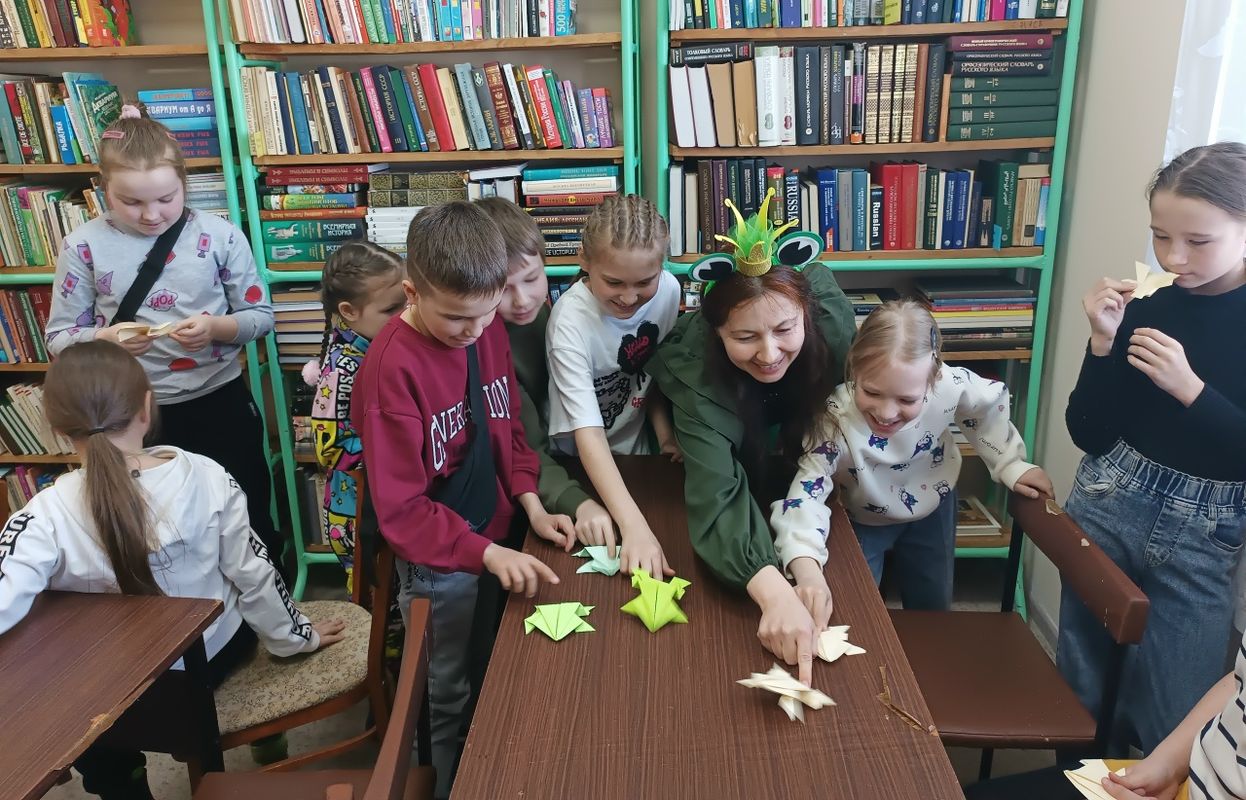 Открытие Недели детской книги в Приволжской библиотеке началось с игровой программы «Лягушачий праздник» в честь Всемирного дня лягушек 20 марта. Мероприятие провела Царевна-лягушка. Участники узнали о жизни лягушек и их роли в природе через факты, игры и конкурс. Прочитали сказку Л. Пантелеева «Две лягушки», которая учит бороться до конца. Дети сделали лягушек из бумаги в технике «оригами» и устроили гонки. Завершилось всё танцевальной песней «Танец лягушки». Программа повысила интерес к экосистемам и их обитателям.