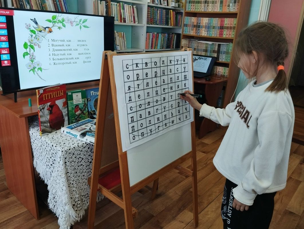 Сотрудники Центральной библиотеки провели турнир «Время пернатых друзей» для учащихся 3б класса Помарской школы. Дети отправились в экскурс по истории праздника, участвовали в викторине с загадками и заданиями на узнавание птичьих звуков, а в завершение послушали голоса птиц.