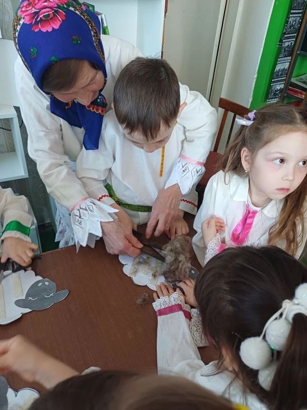 Под чутким руководством библиотекаря дети отправились в прошлое, чтобы узнать о секретах жизни овечек. Малыши с горящими глазами представляли, как большие ножницы превращают пушистых животных в аккуратных красавиц. Они мечтали о том, каково это — работать с таким инструментом и заботиться о животных.