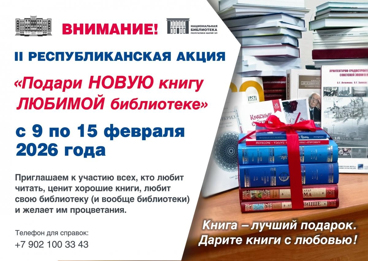 Национальная библиотека имени С. Г. Чавайна при поддержке Министерства культуры, печати и по делам национальностей Республики Марий Эл объявляет II Республиканскую акцию «Подари новую книгу любимой библиотеке».