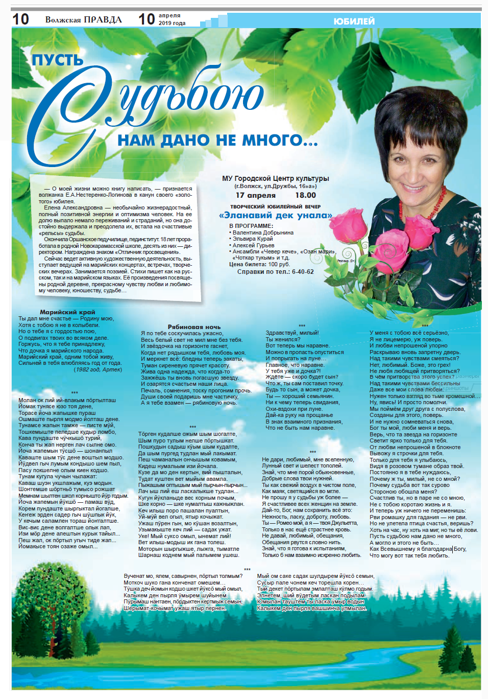 6. Пусть судьбою нам дано не много… // Волжская правда. – 2019. – 10 апреля (№ 15). – С. 10.