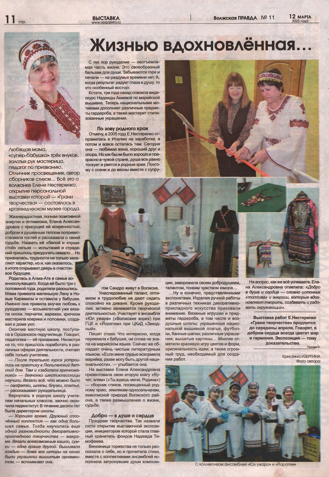 16. Изергина, К. Жизнью вдохновленная… / Кристина Изергина // Волжская правда. – 2025. – 12 марта (№ 11). – С. 11.