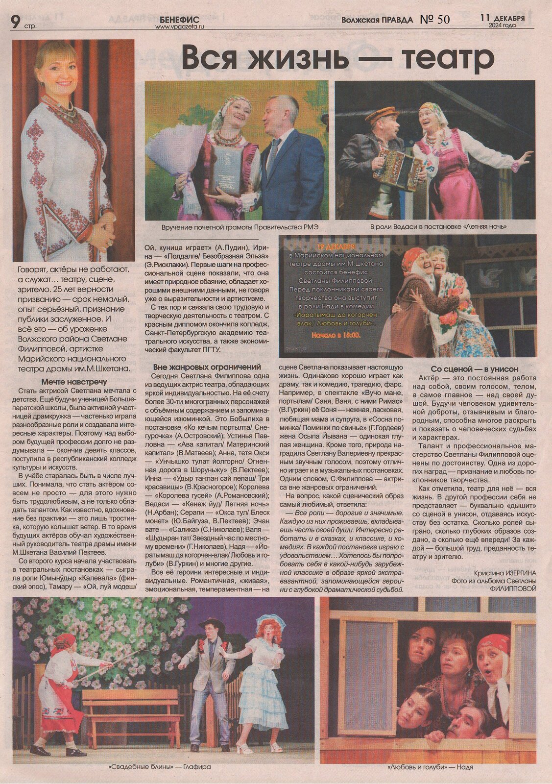 - Изергина, К. Вся жизнь – театр / Кристина Изергина // Волжская правда. – 202 - 11 декабря (№ 50). - С. 9.