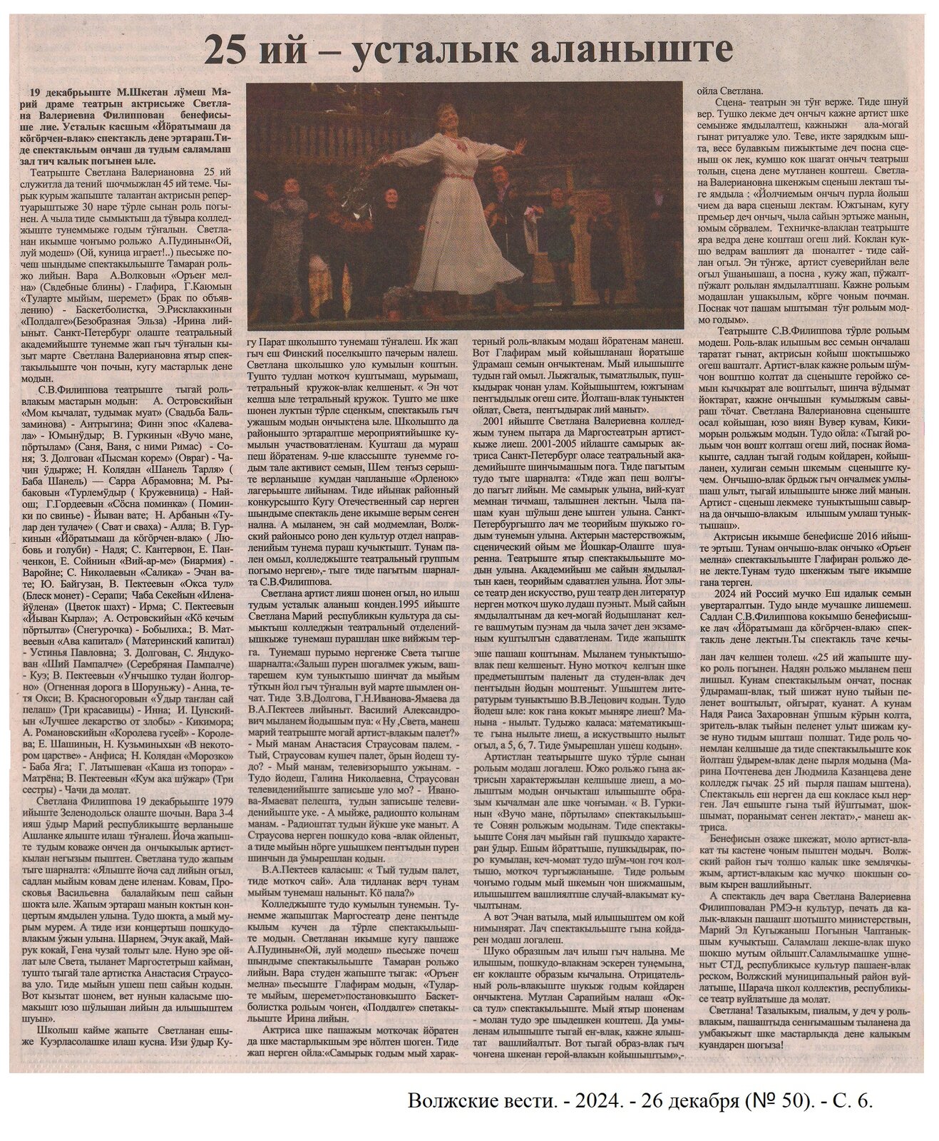 - 25 ий - усталык аланыште // Волжские вести. – 2024. - 26 декабря (№ 50). - С. 6.