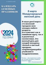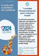 Президент РФ Владимир Путин объявил 2024 год Годом семьи. Семья – это основа любого общества, залог благополучия и процветания государства. Работа библиотек с семьёй – одно из приоритетных направлений в сфере социокультурной политики. В задачи библиотек в 2024 году входит проведение мероприятий, направленных на сплочение и укрепление семей, организацию их досуга, формирование положительных эмоций, сохранение и передачу ценностей семейного воспитания. Выбрать формы массовой и индивидуальной работы с каждым членом семьи, донести до родителей понимание, что семейное воспитание начинается с совместного чтения и обсуждения прочитанных книг.